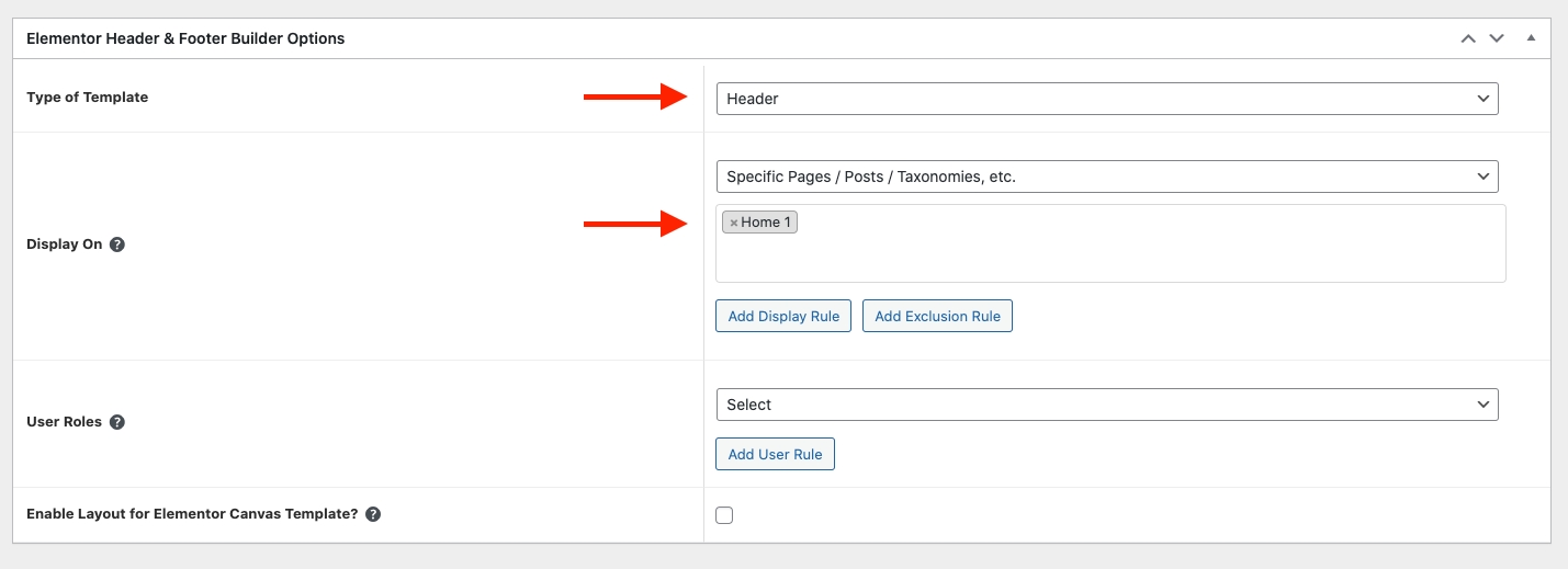 Step 10 - Set the conditions that determine where your Header is. For example, choose 'Entire Site' to display the header across your site.
