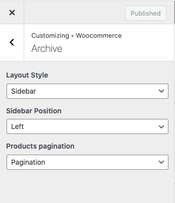 You can choose which layout style you want to set for your Shop Page. Also, you can choose which side you want for your sidebar position.