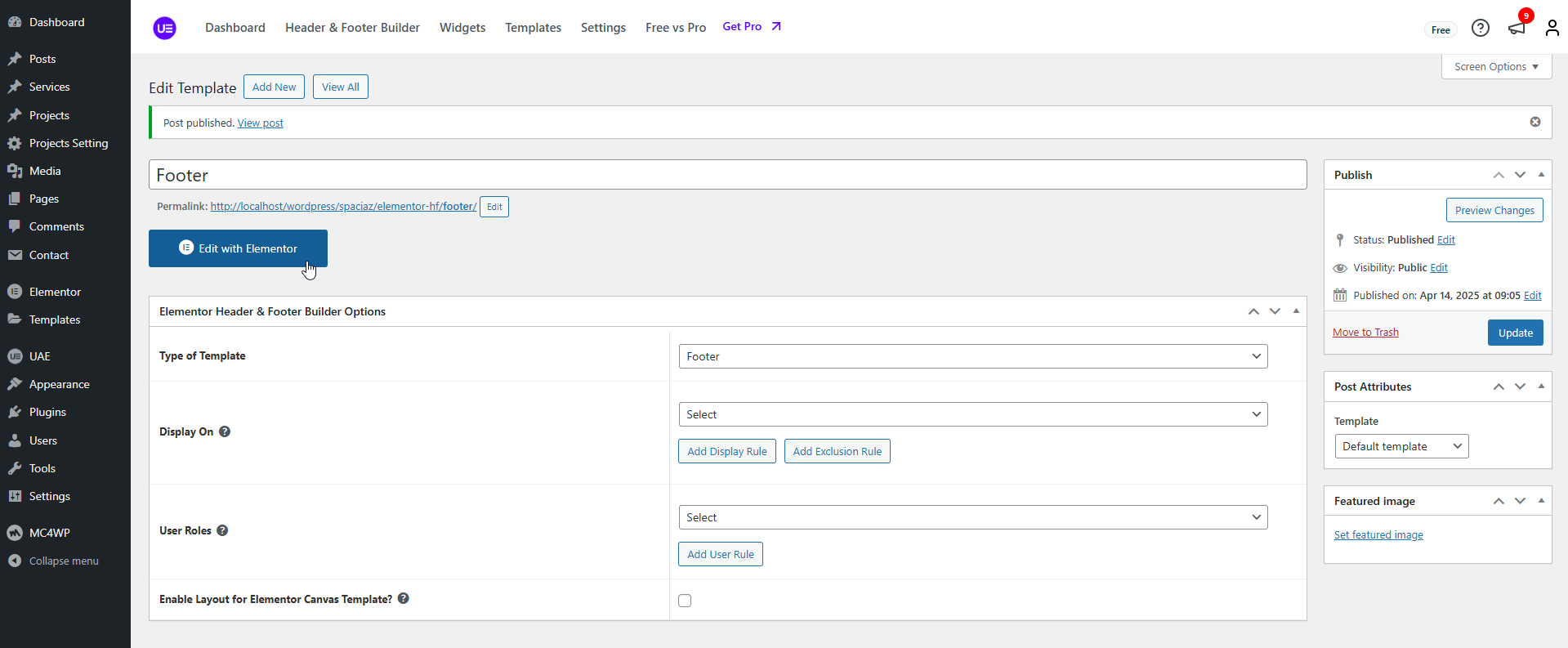 **Step 3 -** Once you publish the header template, click ' **Edit with Elementor** ' to create one from scratch.