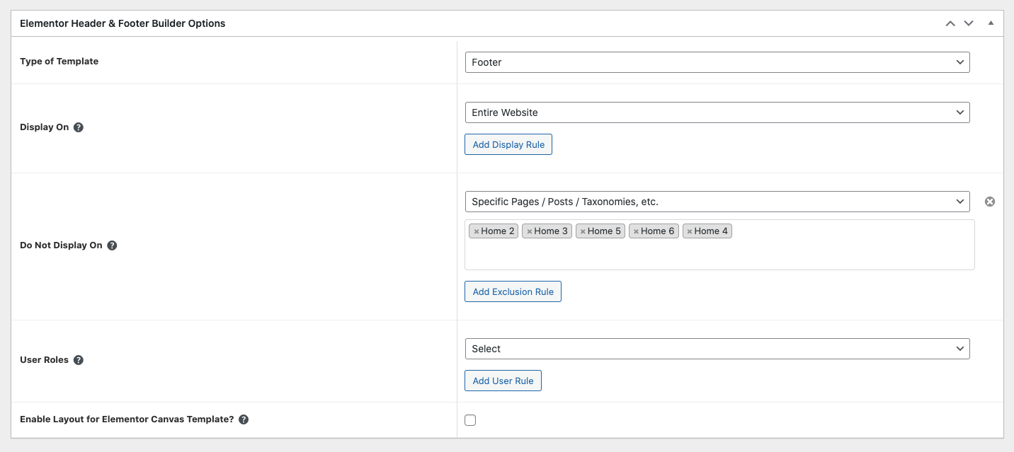 Set the conditions that determine where your **Header** is. For example, choose '**Entire Site**' to display the header across your site or you can choose for a specific page, post, taxonomies, etc.