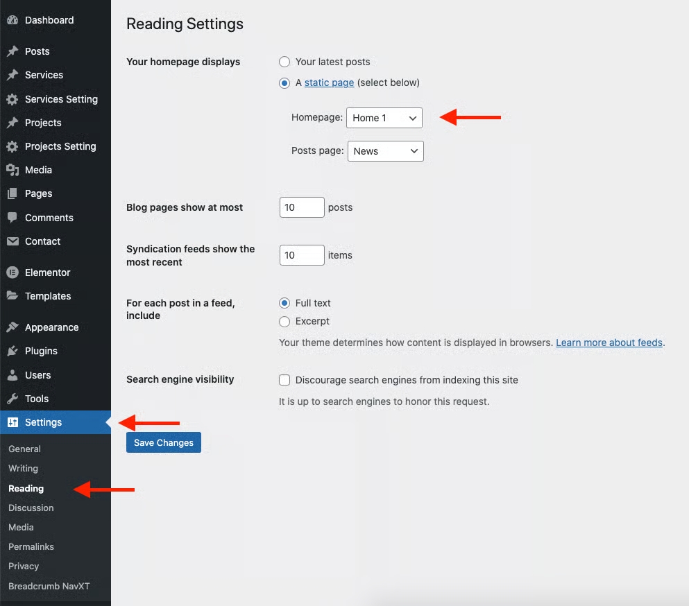 Step 1 - Go to Settings > Reading in your WordPress Dashboard panel.