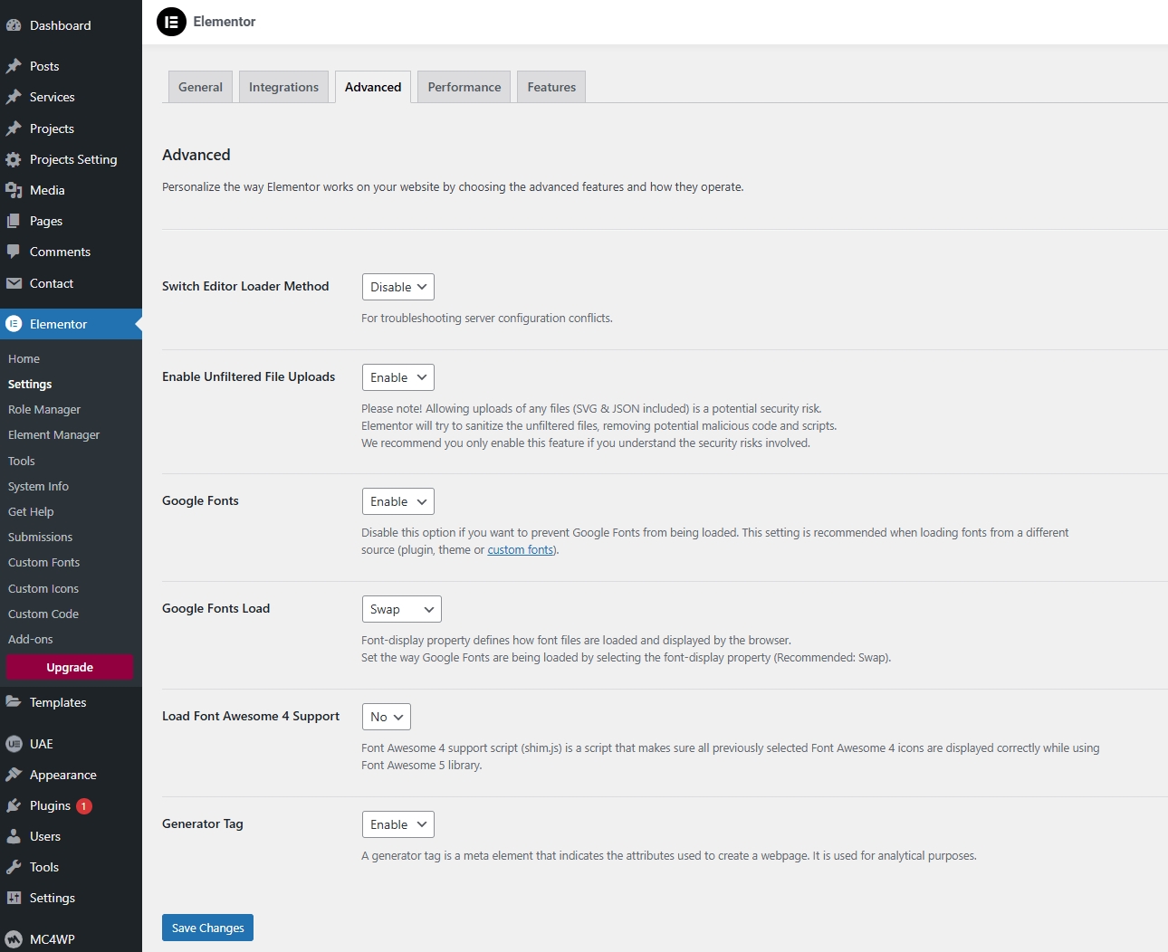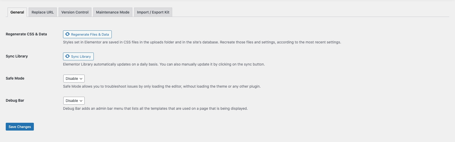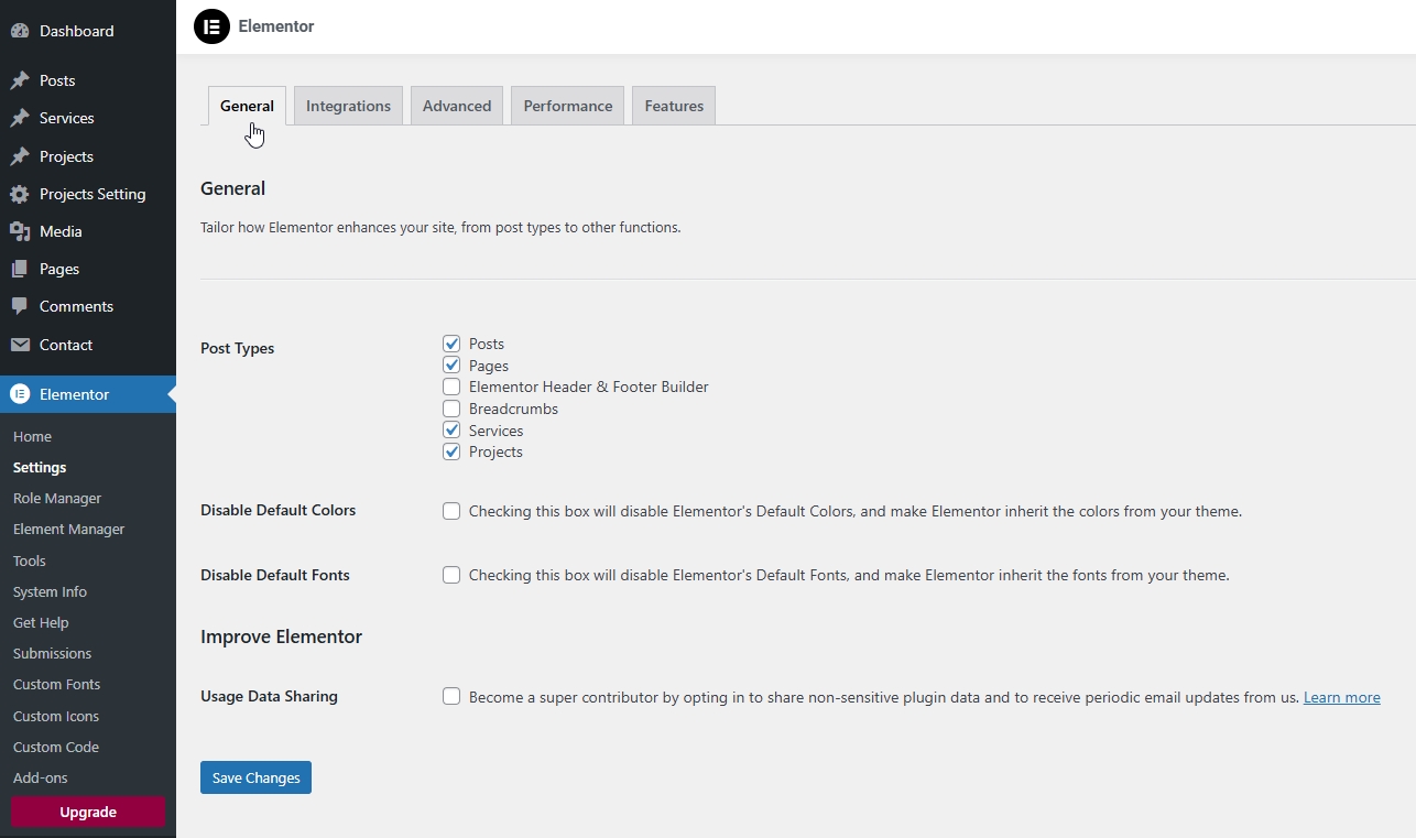 Step 4 - You will see all tabs for the setting Elementor, in the General tab