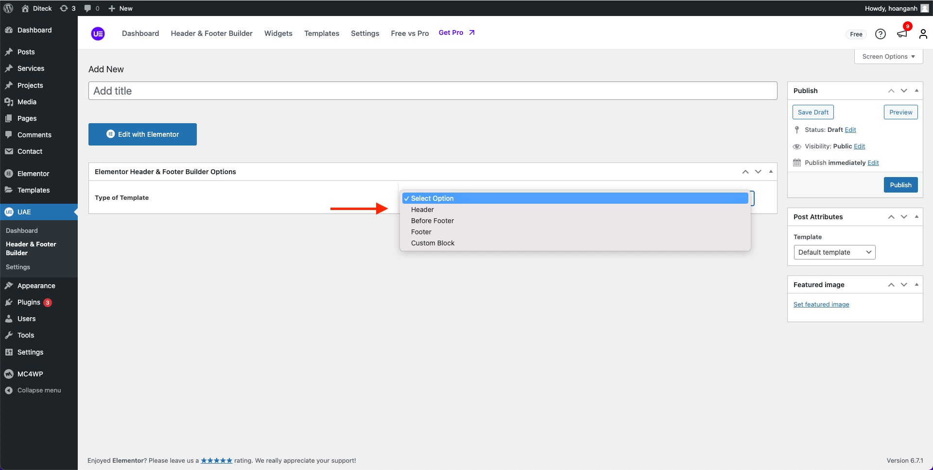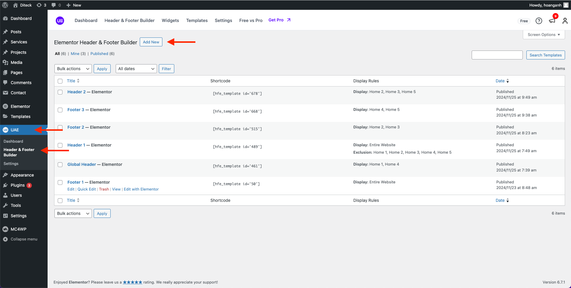 Step 1 - Go to UAE > Header & Footer Builder > Add new.