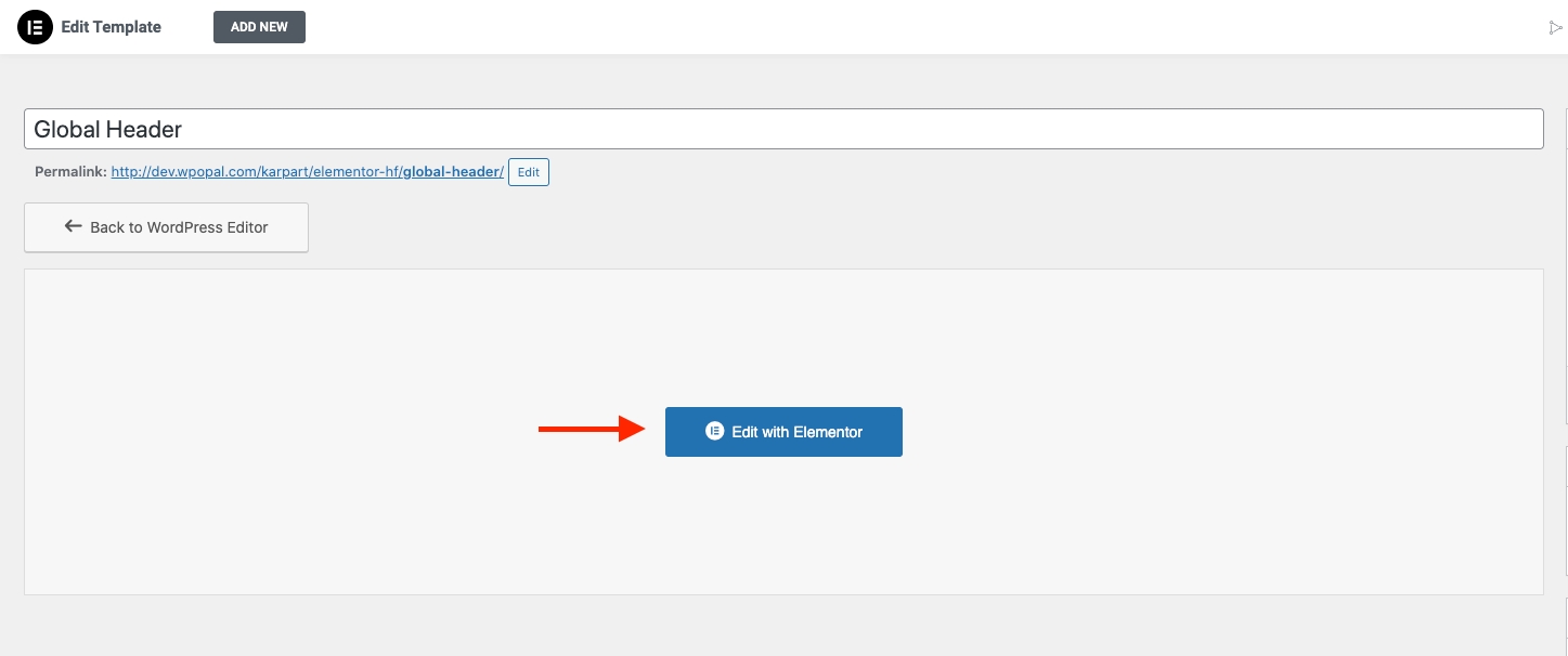 Step 4 - Once you publish the header template, click ' Edit with Elementor ' to create one from scratch.