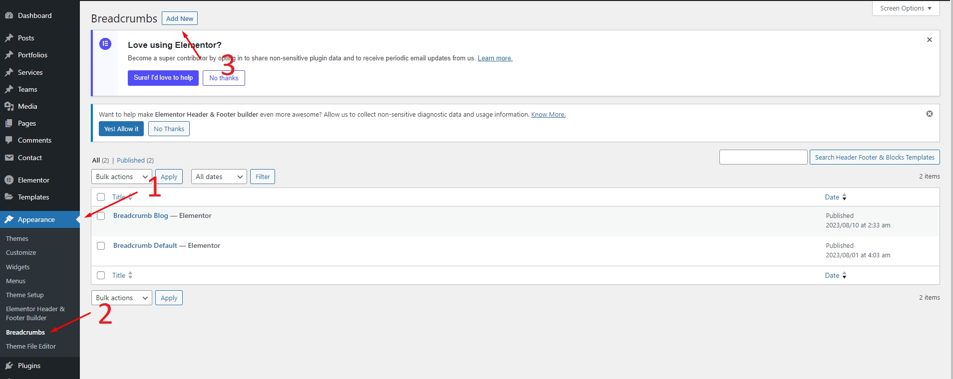 Step 1 Go to WordPress Dashboard > Appearance > Breadcrumb > Add New