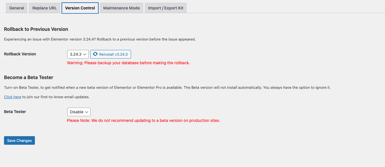 Step 6 - Version control: display config for elementor.
