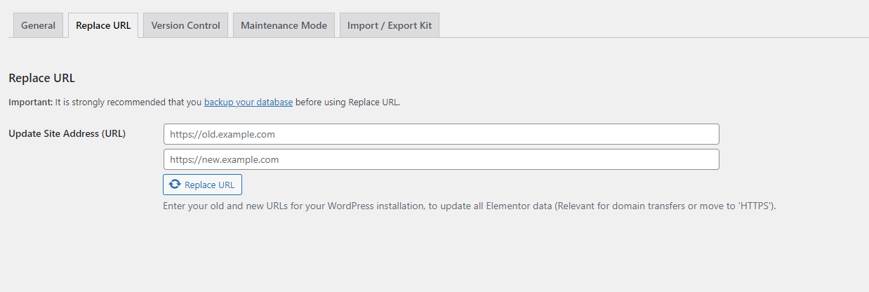 Step 5 - Editor Replace URL tab: display config for site address....