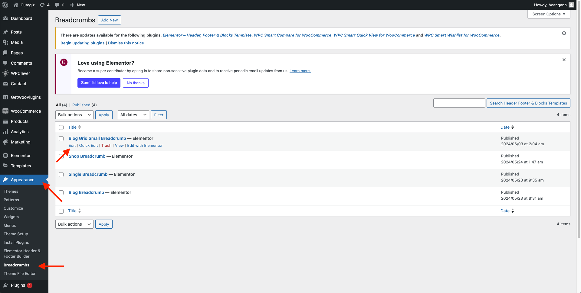 Step 1 - Go to WordPress Dashboard -> Appearance -> Breadcrumb -> Add New