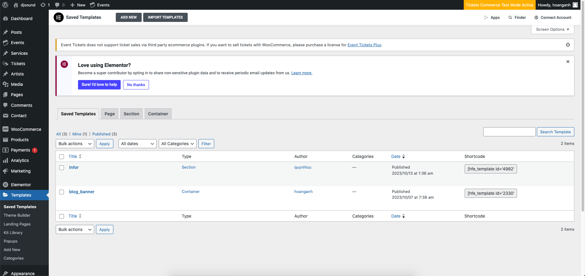Step 1 - From the admin Dashboard, navigate to Templates.