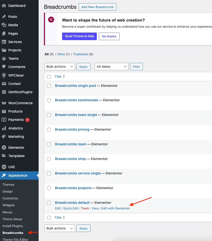 Step 1 Go to WordPress Dashboard > Appearance > Breadcrumb > Add New