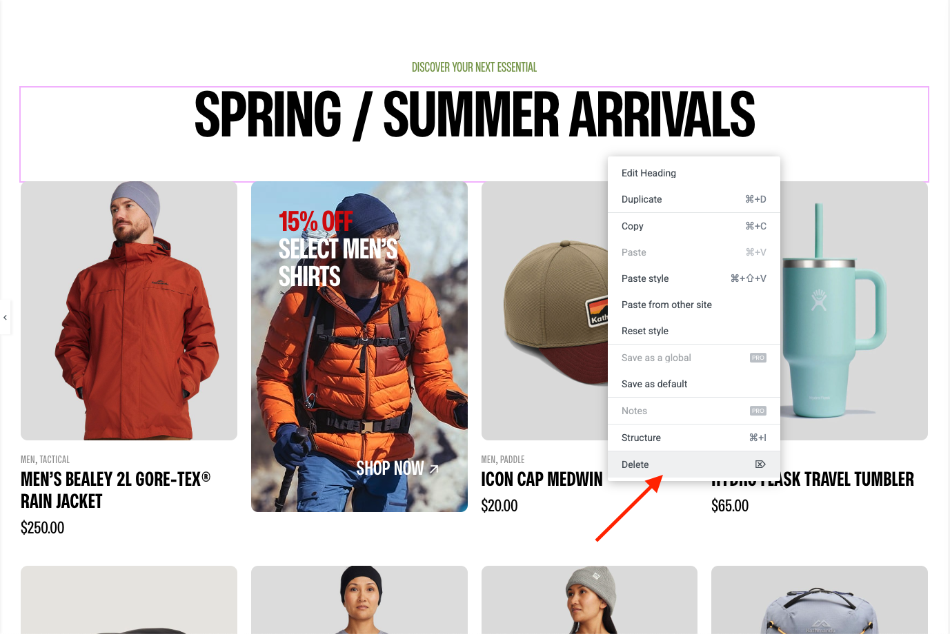 Trash Box Icon - To remove a Container or Module you need to click the Trash Box icon or right-click and click delete.