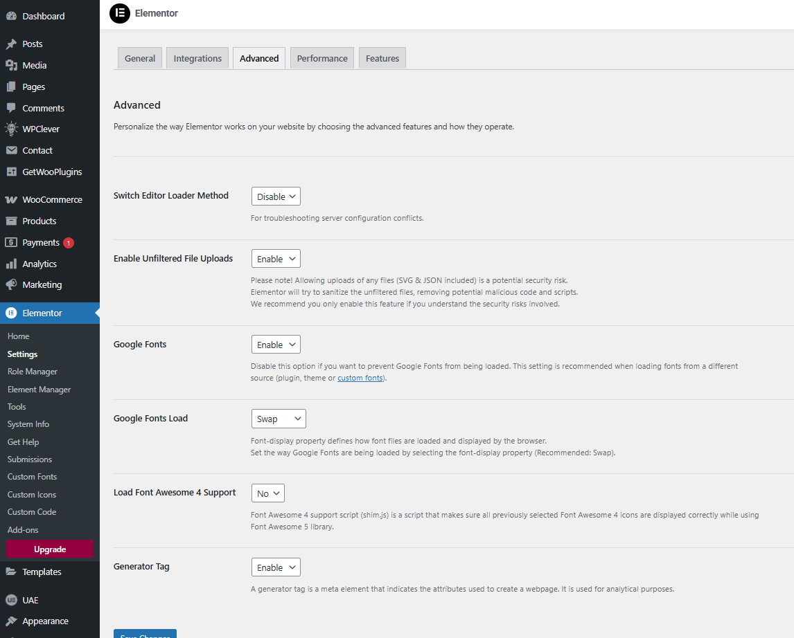 Elementor config