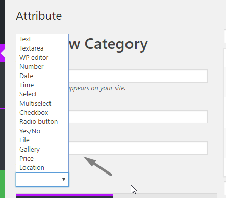 Here, during creating an attribute, you can use types, here more common types are available for you. To see them, click on the type drop-down menu.