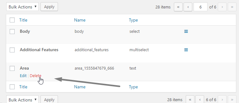 After saving new attribute, you can see all attributes available on Listing Type here. Then hover on Attribute you want to edit or delete.