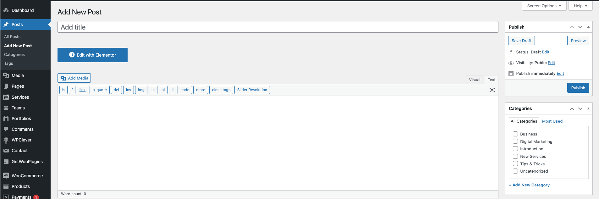 Step 5 - As needed, select a category, add tags, and fill in the meta setings below the editor.
