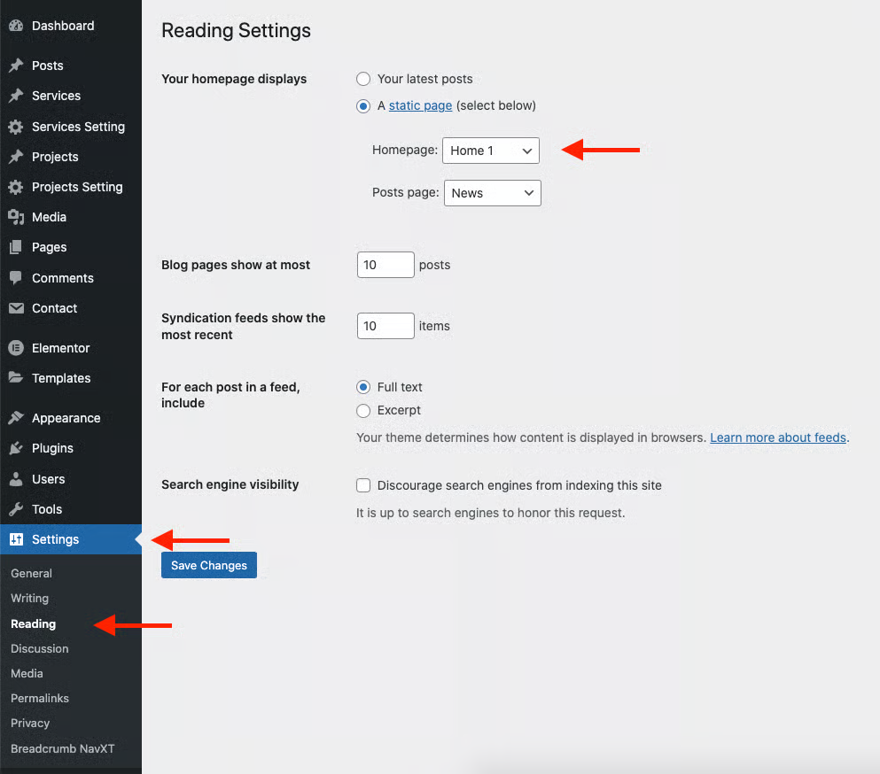 **Step 1 -** Go to **Settings** > **Reading** in your WordPress Dashboard panel.