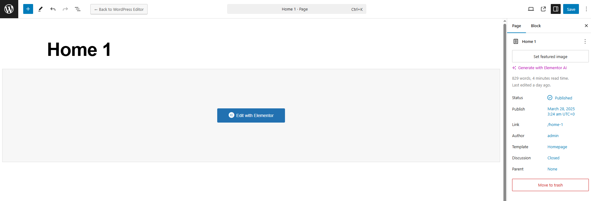 **Step 1 -** Go to your page/post, Activate the backend editor, and click "**Edit with Elementor**".