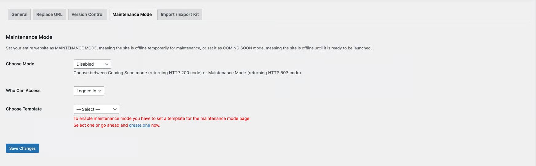 **Step 7** - Maintenance Mode: display config for Elementor.