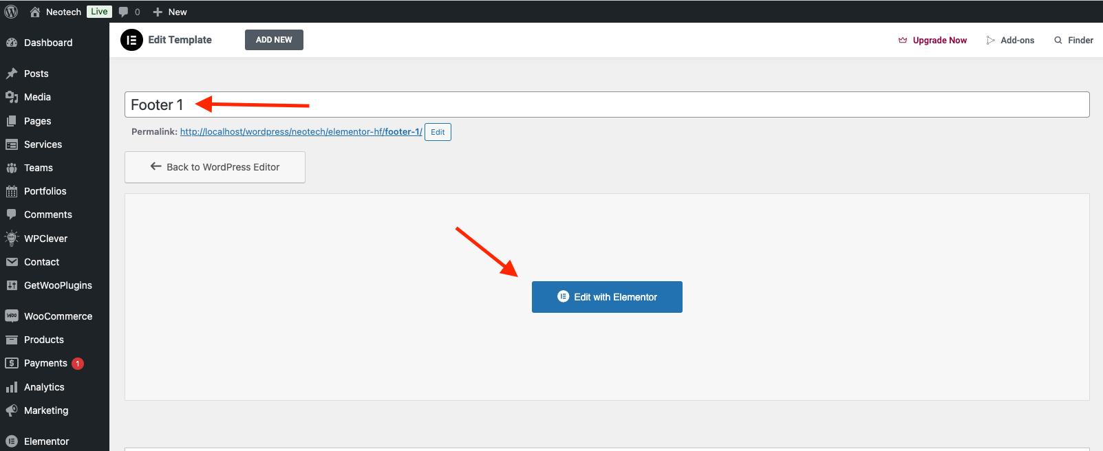 Add new > Edit with Elementor