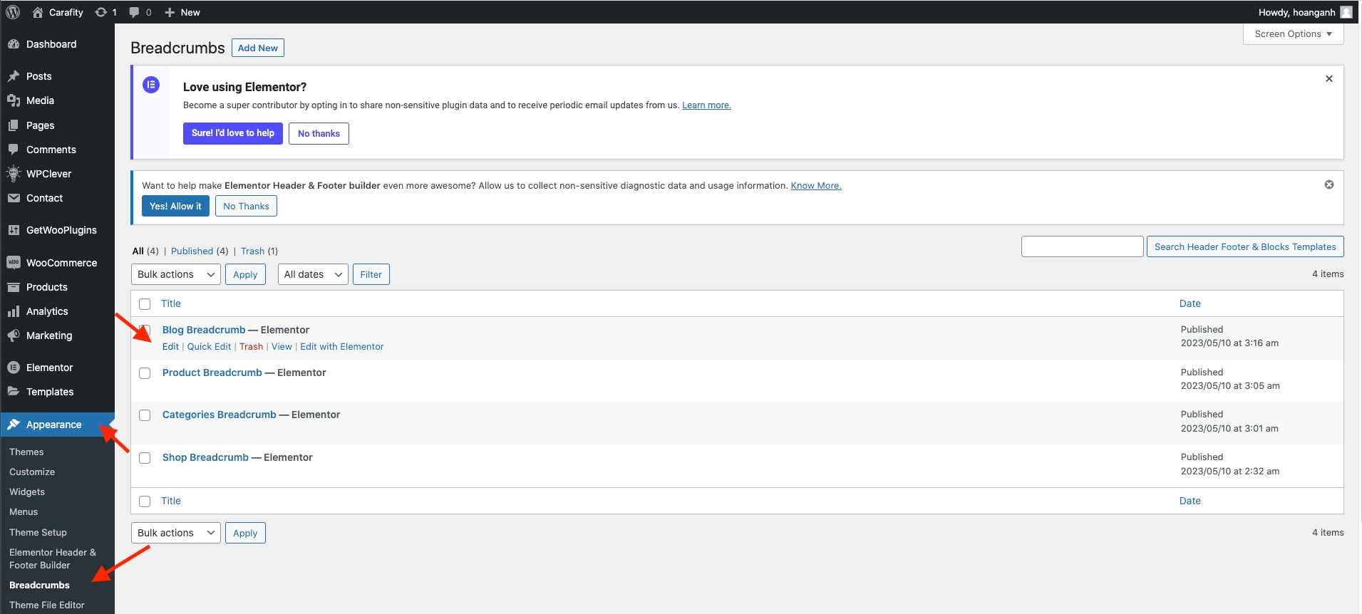Step 1 - Go to WordPress Dashboard -> Appearance -> Breadcrumb -> Add New