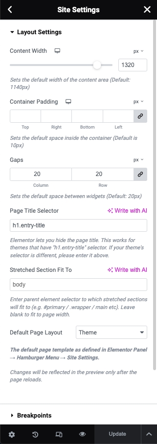 Step 2 - Site Settings -> Layout