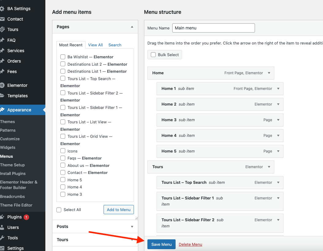 **Step 6** - Click Save Menu.