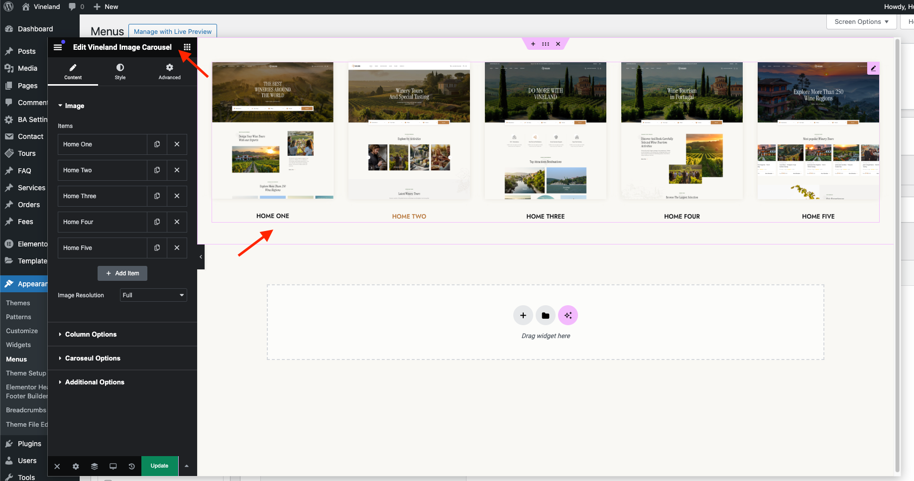 **Step 5** - Click **Edit Megamenu Submenu** then a new window will appear. You can build a **Mega menu** by **Elementor.** After finishing click Update and click.