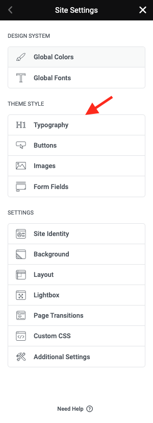 **Step 2** - Site Settings >> Typography >>