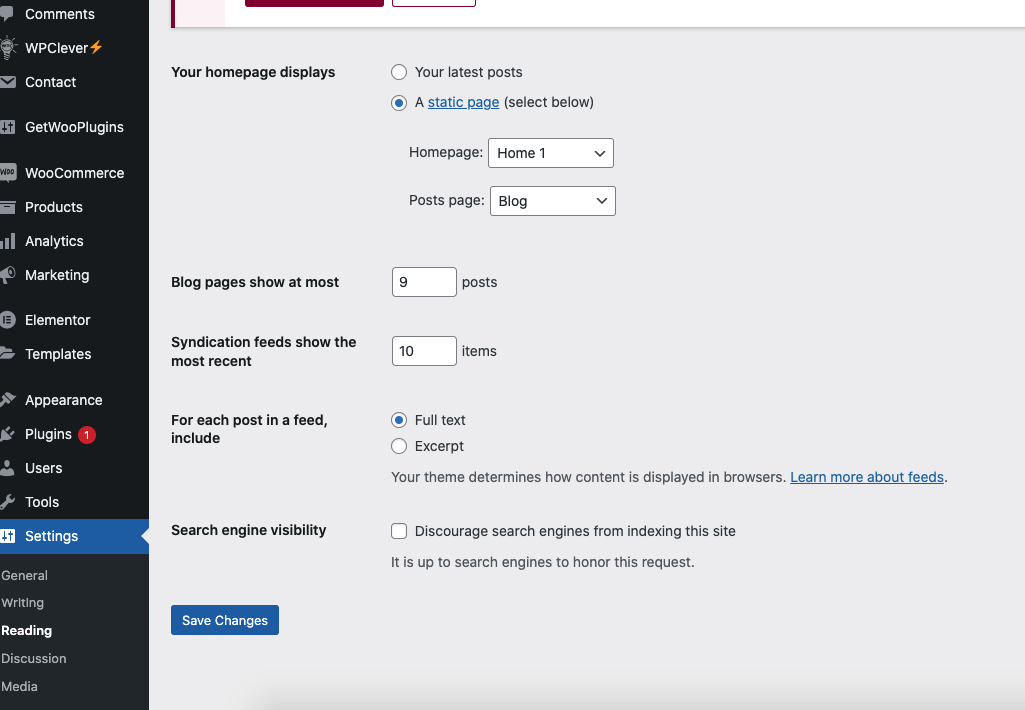 Step 1 - Go to Settings > Reading in your WordPress Dashboard panel.