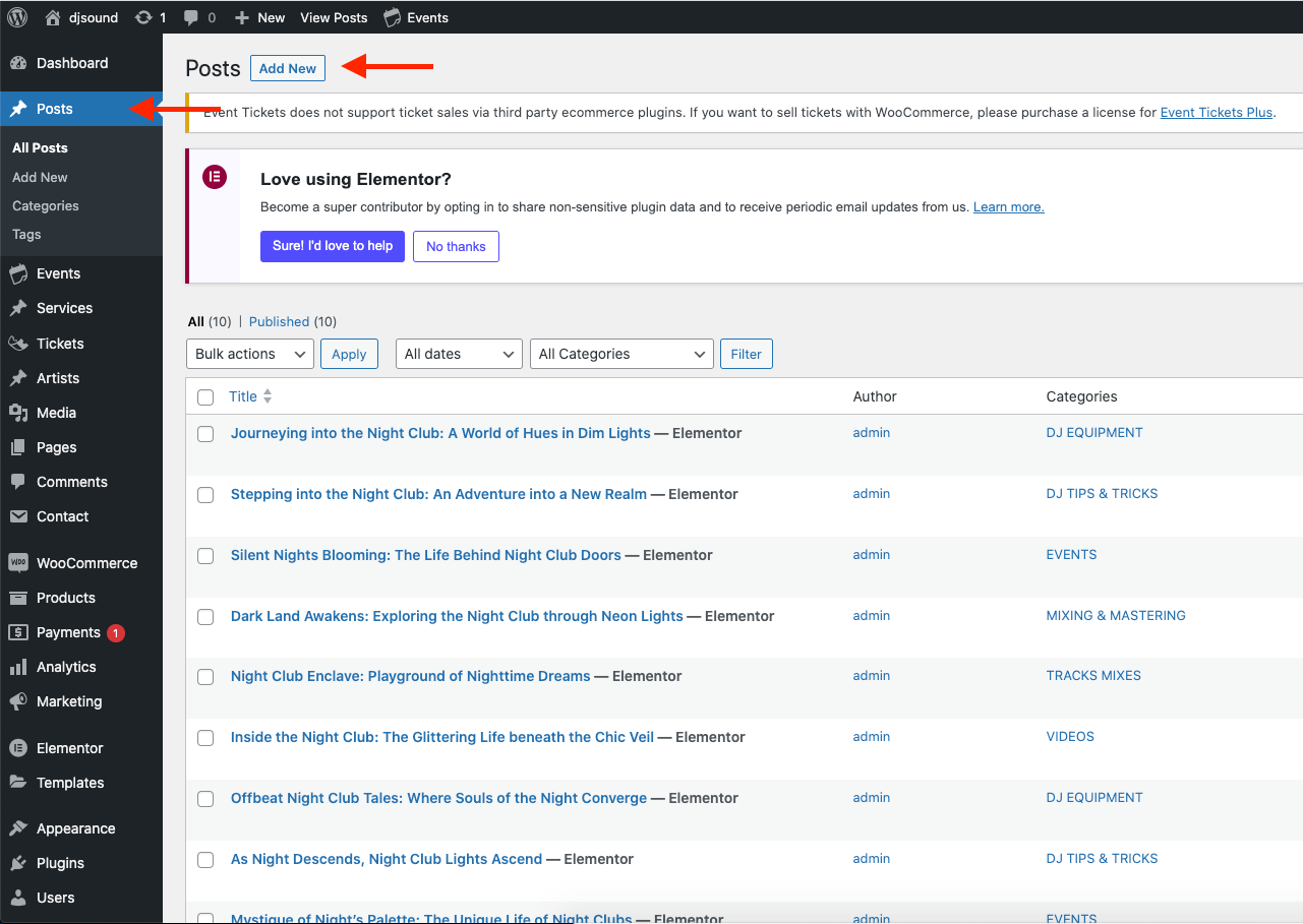 Step 2 - Click on Posts > Add New.
